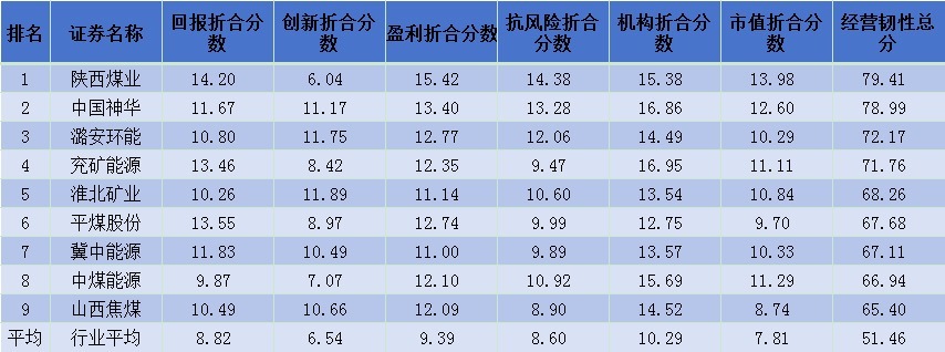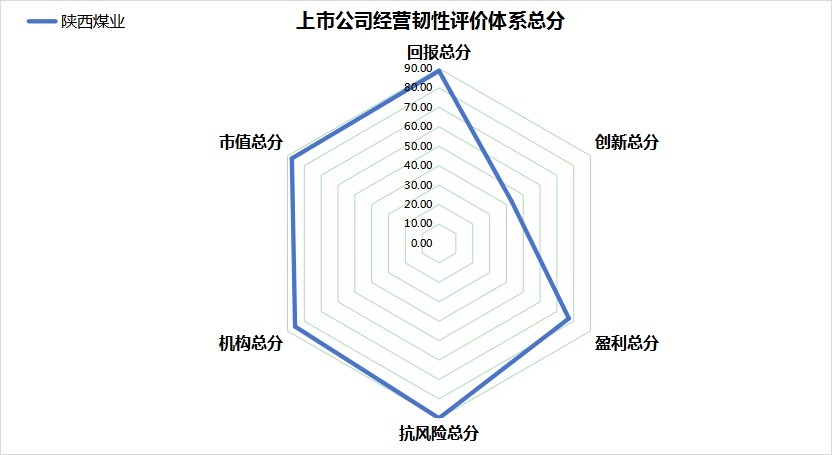 金融界上市公司研究院构建了一套上市公司韧性评价体系,从企业盈利、科技创新、股东回报、经营抗风险、市值表现及机构吸引力六个维度对企业进行量化评分,满分为100分。陕西煤业的韧性评价总分为79.41分,在A股5410家可比上市公司中排名第11位。